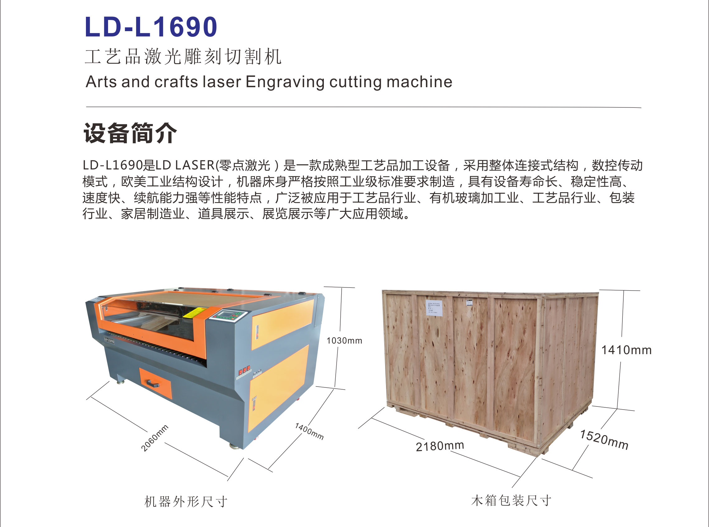 LD-L1690是LD Laser(零點激光)一款成熟型工藝品加工設備,采用整體連接式結構,數(shù)控傳動模式,歐美工業(yè)結構設計,機器床身嚴格按照工業(yè)級標準要求制造,具有設備壽命長、穩(wěn)定性高、速度快、續(xù)航能力強等性能特點,被廣泛應用于工藝品行業(yè)、有機玻璃制造業(yè)、包裝行業(yè)、家具制造業(yè)、道具展示、展覽展示、服裝制造業(yè)等廣大應用領域。